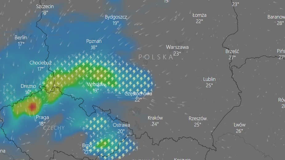 Sprawdź, gdzie jest burza na mapie burzowej.